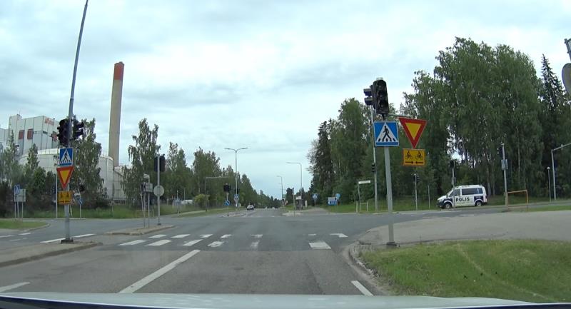 Kilpailun ensimmäinen jakso alkoi lupaavasti. Olimme ajaneet vain kilometrin, kun vastaan tuli risteys, jossa liikennevalot vilkulla ja meillä kolmio ja oikealta tuli samaan aikaan poliisi. Jarrutin siihen reippaasti kun auto näkyi, mutta mietittiin Askon kanssa, että olisi se ollut noloa jos olisin ihan poliisin nenän edestä kaahannut. Olisi voinut tulla sanomista...