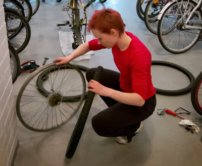 Vaihdoin polkupyörääni vapunaattona kesärenkaat. Helmikuinen talvirenkaidenvaihto-operaatio kävi niin kätevästi, että vaihdoin kesärenkaat ihan vapaaehtoisesti kun ei ollut muutakaan tekemistä. Se taisikin olla vanha ulkokumi, joka oli niin tiukka että sen kanssa meni aina tappeluksi, kun taas nämä nykyiset sujahtavat melko helposti pois vanteelta/vanteelle.