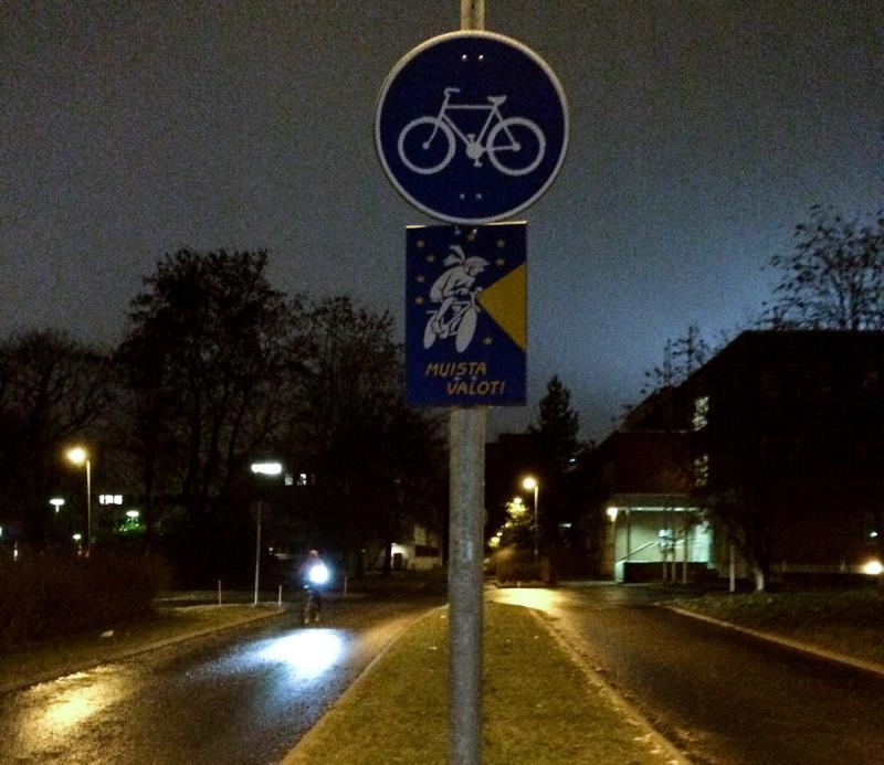 Olen huomannut, että työmatkapyöräilijät käyttävät ihan kiitettävästi valoja ja myös punaisia takalamppuja näkee paljon. Koululaisilla olisi sen sijaan petrattavaa, sillä pimeitä ja heijastimettomia nuoria tulee vastaan päivittäin.