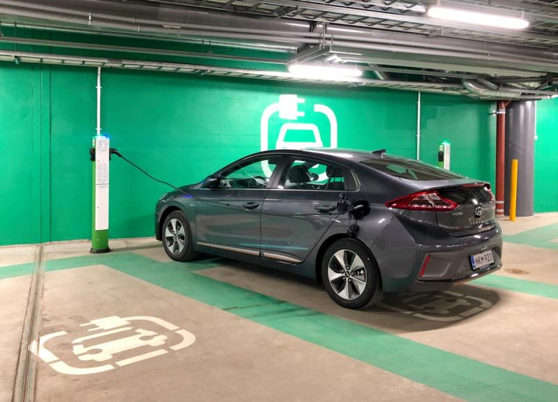 Hyundai Ioniq electric latautumassa kauppakeskus Redissä.