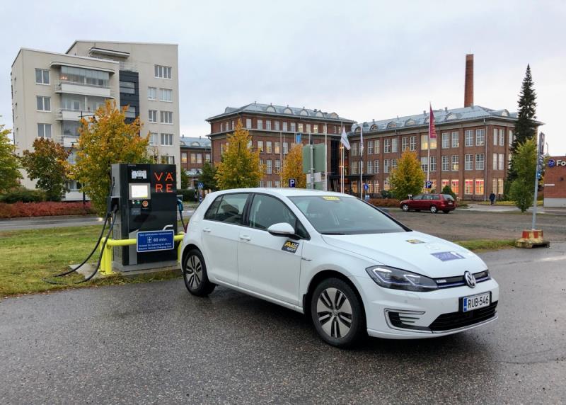 Volkswagen e-Golfin latasin työpaikkani edustalla sijaitsevalta Väre energian pikalaturilta.