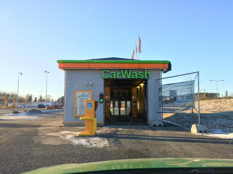 Pesupaikaksi valitsin Palokan ABC:n, jossa harjaton pikapesu maksaa 13,90. Kuten toivoinkin, ei ollut yhtään jonoa kello seitsemän aamulla! Vaihtoehtona olisi ollut 14,20 e hintainen harjaton pesu City Car Washissa Palokanorren toiselle puolella, mutta työkaverini oli sitä mieltä, että ABC:n kone pesee paremmin. Hyvinhän kumpikaan ei pese, mutta pääsee edes suurimmista ravoista eroon. Käsinpesuun auton voi viedä sitten, kun se pysyy edes viikon puhtaana.