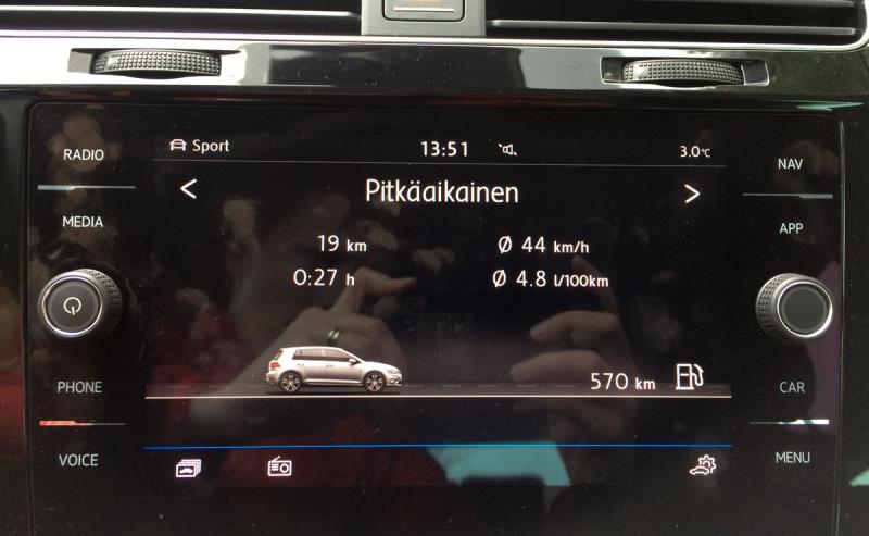 Uudessa Golfissa on paljon uutta ns. tietotekniikkapuolella, kun multimedianäyttö on pistetty uusiksi ja mittaristosta on tullut samalla tavalla digitaalinen kuin alkuvuodesta koeajamassani Audissa. Nyt kaikki hienoudet oli tajuttu ottaa mukaan koeajoautoon toisin kuin 7. korin Golfia testatessani, jolloin auto oli lähes karvalakkimalli.
