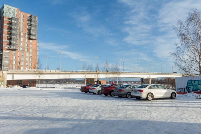 Satamakadun kupeessa olevalla parkkipaikalla saa pysäköidä 2 h kiekolla. Sataman sisääntuloväylän oikealla puolella (kuvassa taka-alalla) oleva parkkialue on sen sijaan maksullinen.