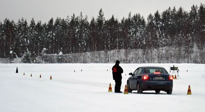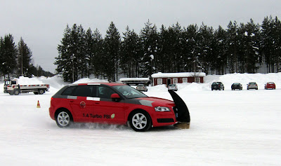 Audin testailun jälkeen käväisin tauolla, minkä jälkeen jouduin luovuttamaan "ylimääräisen" opettajan pikkuveljelleni, joka lähti kokeilemaan liukastelua kuorma-autolla. Opettajiahan radalla oli yhteensä kolme: yksi seisoi radan reunassa lähettämässä ihmisiä matkaan ja antamassa palautetta, toisen kanssa sai testata autoliikkeestä lainattua nelivetoa ja kolmas istui kyydissä ihmisten omissa autoissa tai kouluautoissa tarpeen mukaan.