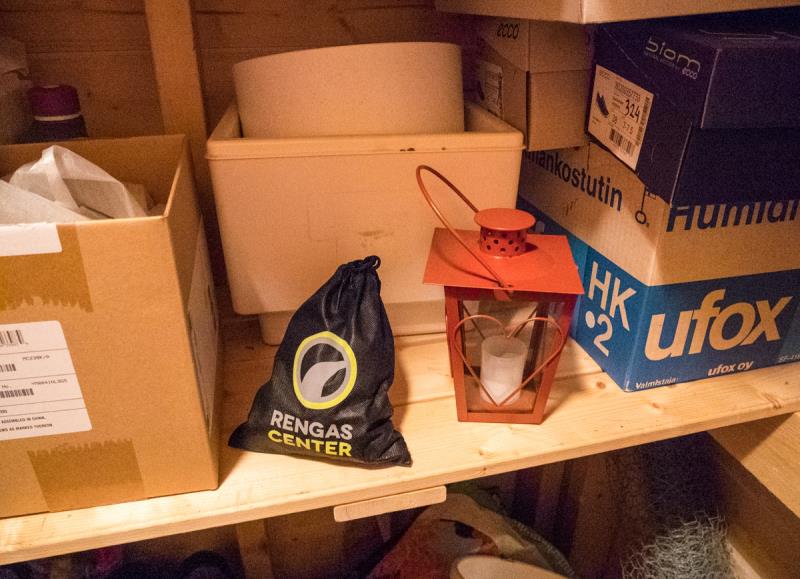 Pulttipussi ja joululyhty hengailemassa varaston hyllyllä...