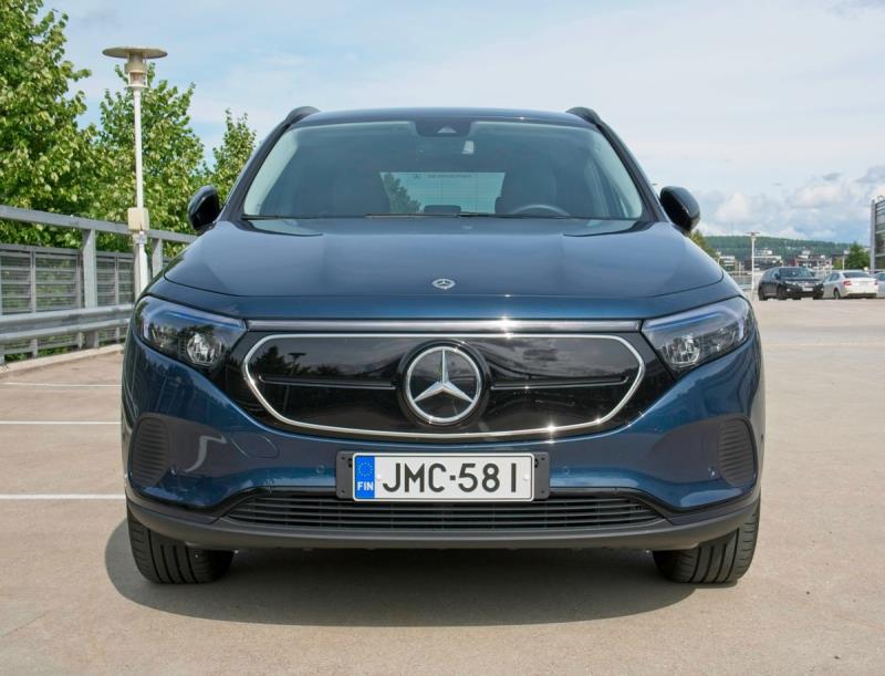 Mercedeksen EQ-sarjan autojen keuloista en oikein välitä ja tässä sekin tökkii eniten. Pianolakattu keskiosa ja siitä suoraan jatkuvat valot eivät ole minusta kovin onnistuneen näköiset. Esimerkiksi A-sarjan keula on paljon paremman näköinen! Etenkin jos olisi vielä AMG Linen pilkut...