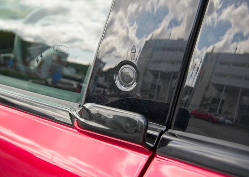 Etuovien kahvat ovat hassut pienet koukut. Ovi avautuu sähköisesti, kun kahvan yläpuolella olevaa painiketta koskettamalla, ja sen jälkeen koukusta vedetään ovi auki. Takaovissa kahvaa ei ole lainkaan, vaan ovi vedetään auki sen reunaan tarttumalla, kun painikkeesta on ensin pompautettu ovi raolleen.