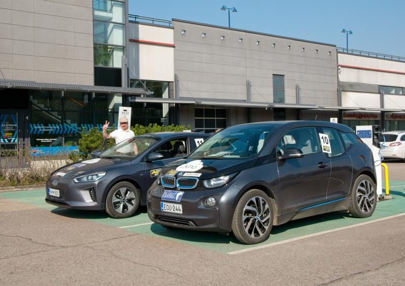 Tero ja kilpailun vähäruokaisimmat sähköautot; Hyundai IONIQ electric ja BMW i3.
