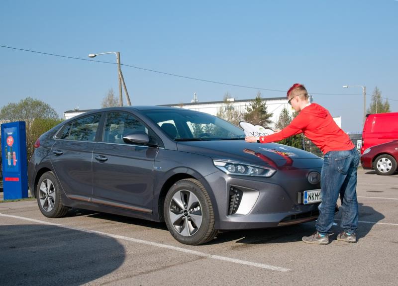 Kävin hakemassa IONIQin Vantaalta reilu viikko ennen kilpailua, jotta ehtisin tutustua siihen ja oppia auton tavoille. Sen 28 kWh akku aiheutti alkuun vähän stressiä pienuudellaan, mutta lopulta pärjäsin sillä ihan hyvin. Auto on todellakin taloudellinen. Oli muuten jo kolmas ajamani sähköauto tälle vuodelle!