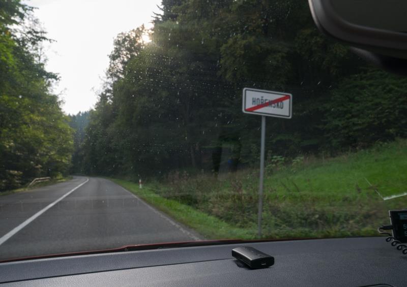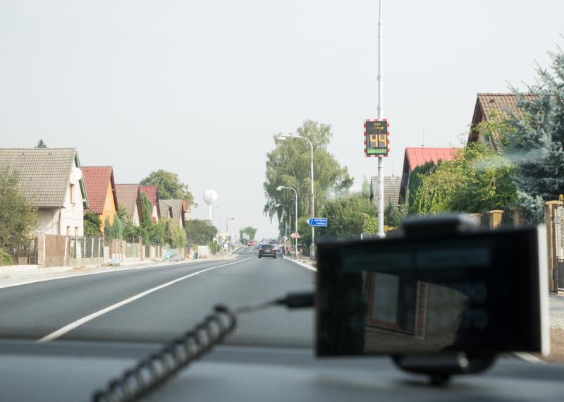 Todella monien taajamien rajalla oli nopeusvalvontanäyttö. Tämä sanoo "Dekuji" eli kiitos kun ajoin rajoituksen mukaan. Tai suorastaan alle...
