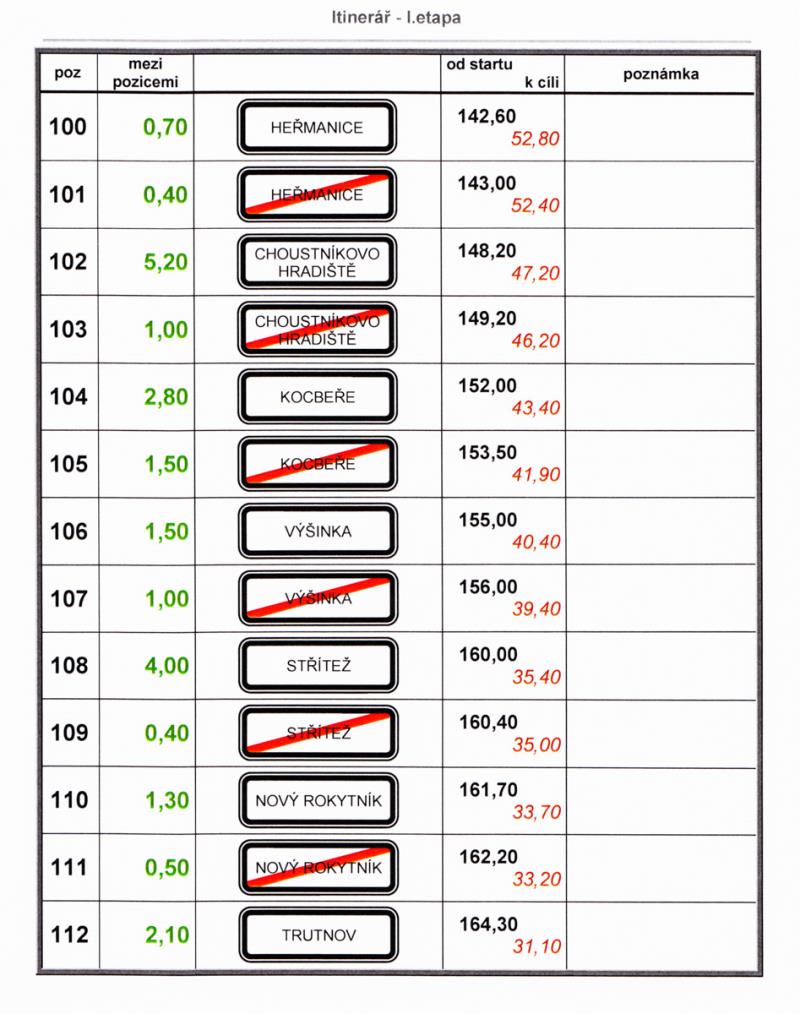 Tsekeissä ei ole erikseen taajama-liikennemerkkiä kuten meillä, vaan taajaman nimikyltti ajaa saman asian. Taajaman lopetus puolestaan kerrotaan nimikyltillä, jossa on punainen viiva päällä. Välillä yksi taajama loppui ja toinen alkoi samasta tolpasta!