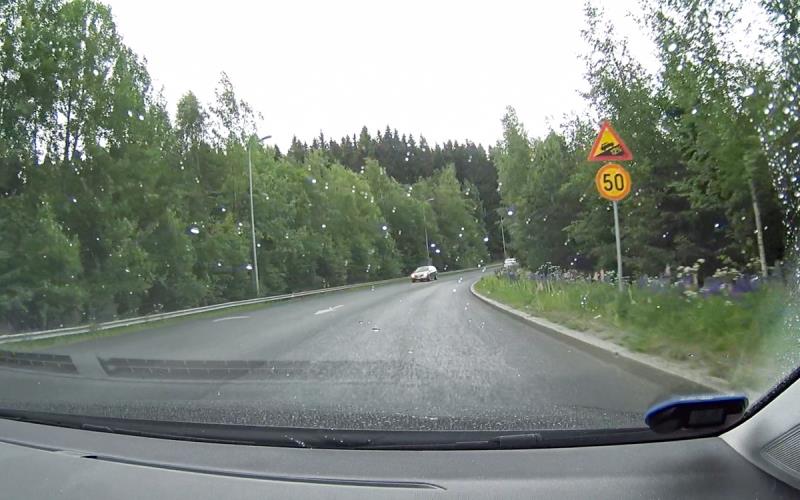 Arto ajoi siitä mielestään liikenteenjakajan mukaan, mutta yhtäkkiä huomasimme, että meidän oikealta puolelta tulee autoja samalle kaistalle ja jouduimme pysähtymään. Mitäs ihmettä?