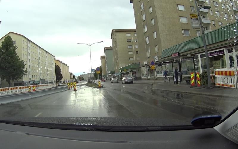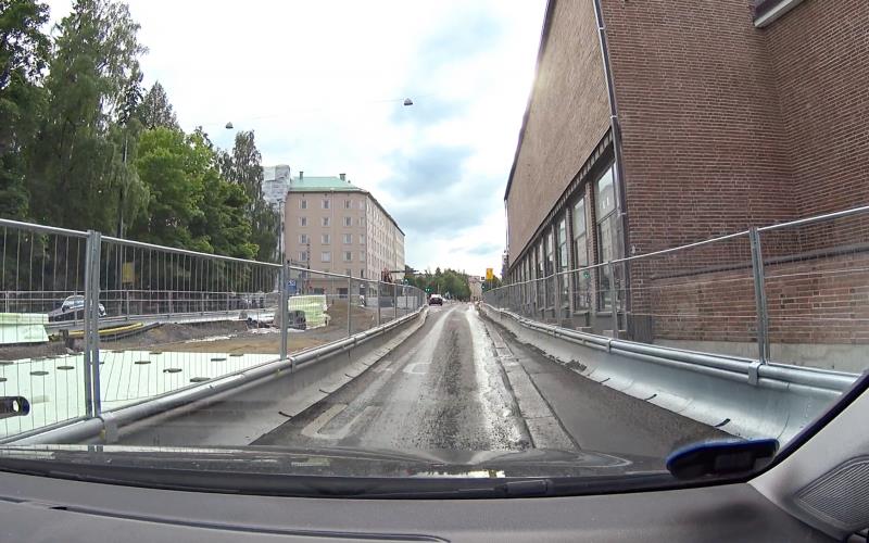 Hieman aiemmasta kohdasta Sammonkadulla raitiotyömaa oli merkitty vähän huonosti. Vai miten ajaisitte tämän kohdan? Voisin kuvitella, että moni jatkaa vahingossa suoraan työmaalle, koska siinä ei ole liikenteenjakajaa ohjaamassa oikealle.
