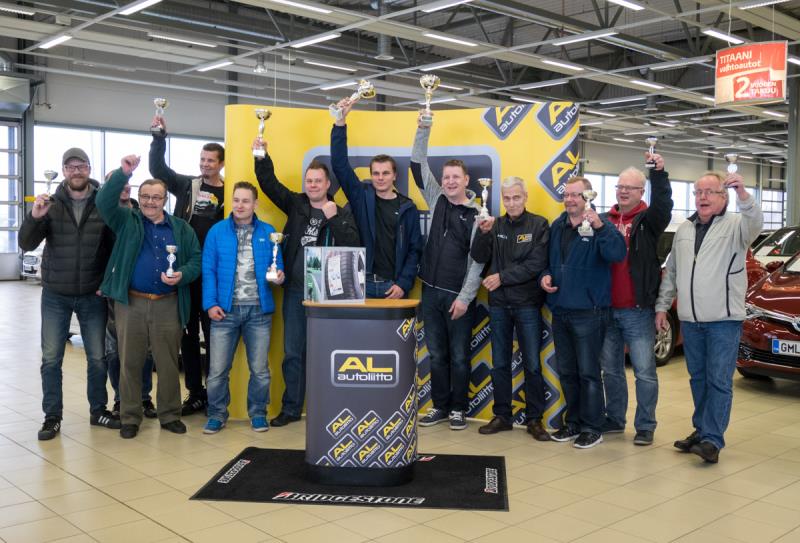 Voittajien on helppo hymyillä. Kilpailun voittivat keskellä seisovat Terho Havumäki ja Timo Savilaakso. Kaikki finaaliin päässeet palkittiin pokaaleilla.