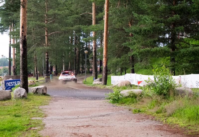 Koska minulla oli nyt kätösissäni - tai pikemminkin kaulassani - kaikille erikoiskokeille oikeuttava rallipassi, niin pitihän sitä hyödyntää. Lyöttäydyinkin torstaina mukaan työkaverini seurueeseen Jyväskylän keskustassa ajettavalle Harjun erikoiskokeelle. Katselupaikaksi pojat olivat valinneet ek:n loppupuolella olevaan hidastetöyssyyn rakennetun shikaanin, johon autot ensin hidastavat ja siten taas kaasu pohjaan ja kohti maalia. Paikalta näki myös hieman autoja, kun ne ajoivat Harjun rinnettä alas.