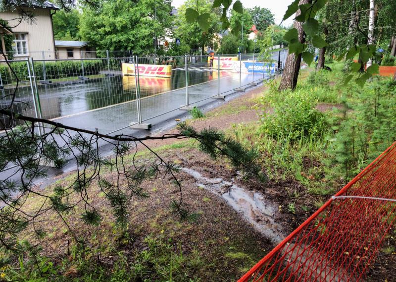 Koitimme olla hieman sateen suojassa puun alla. Viereen muodostui kunnon joki...
