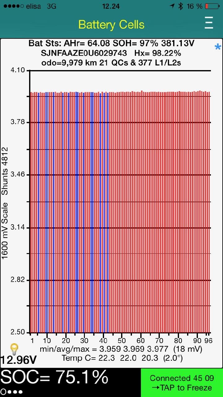 LeafSpy-sovelluksella akun maksimikapasiteettia katsoessa näyttäisi siltä, että ajoakusto olisi menettänyt jo hieman kyvykkyyttään uudesta. Jos tulkitsin LeafSpyn englannin-kieliset ohjeet oikein, niin Hx=98,22% kertoisi sen, että tämän auton akku kykeneisi enää vähän alle 99% maksimilataustasoon uudesta akustosta. En valitettavasti ole käyttänyt LeafSpy-appsia uudessa autossa, joten en osaa sanoa, oliko tuo edes uudessa 100%. Olen kuitenkin lukenut sähkautot.nyt -facebookryhmässä kirjoitettuna, että yli 70 tkm ajetussa Leafissa olisi ollut laskua 19%-yksikköä, joka jo rajoittaisi aika paljon käyttöä. Aika näyttää, miten tässä tulee käymään.