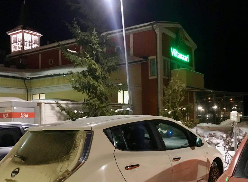 Kyläilyn jälkeen tein lyhyen siirtymän vielä Palokankeskuksen Citymarketin Type2-latauslaitteelle. Täällä on mukavasti vieläpä imainen lataus. Suoritin akun lataamisen täyteen asti ja samalla puin päälle arktisempaa asusta loppumatkaa varten. Tästä eteenpäin pakkasen pienestä kiristymisestä huolimatta ajan ilman lämmitystä.