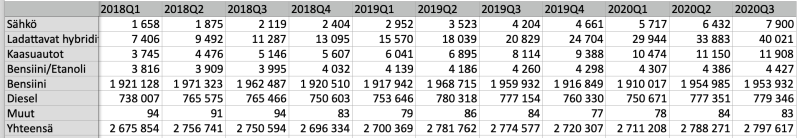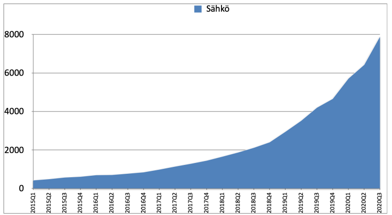 7900 sähköautoa tieliikenteeseen rekisteröitynä Suomessa Q3/2020