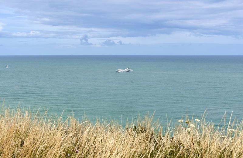 Alla olevassa kuvassa näkyy keskellä lentokone, mikä lensi jalkojemme korkeudella meren yllä. Säikäytti muuten pahan kerran, kun yhtä-äkkiä silmäkulmassa tulee jyristen ihan kohtalaisen kokoinen lentokone omien silmieni alapuolella.