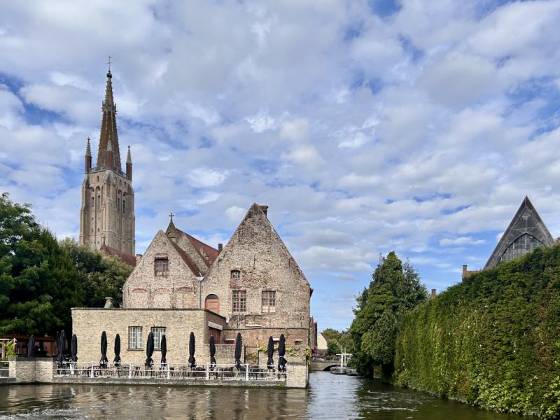 Brugge on jälleen mielenkiintoinen ja hyvin säilynyt keskiaikinen kohde matkallamme. Majoituimme siellä jälleen aivan vanhan kaupungin kupeeseen Rosenburg Hotel Bruggeen kahdeksi yöksi ja paremman luokituksen huoneessa kanavanäköalalla 241,96 euron hinnalla. Ajattelin olla Eurooppalainen matkaaja, enkä ottanut aamiaista hotellista, koska halusin syödä walking breakfastin jossain kivassa kahvilassa, tai vielä mieluummin hakea lähikahvilasta tuoreet croissantit ja kahvilasta maukkaat kahvit. Tämä osoittautui kuitenkin Bruggessa tällä kertaa virhearvioksi, koska etenkin toisena aamuna lähin konditoria oli kyllä avoinna ja sain maukkaita croissantteja, mutta kahvia ei aamullaa saanutkaan mistään kohtuullisen kävelymatkan päästä. Ostin sitten hotellista kahvit croissanteille ja manasin, että olisi ollut fiksumpi ottaa suoraan hotellin aaiamiainen.