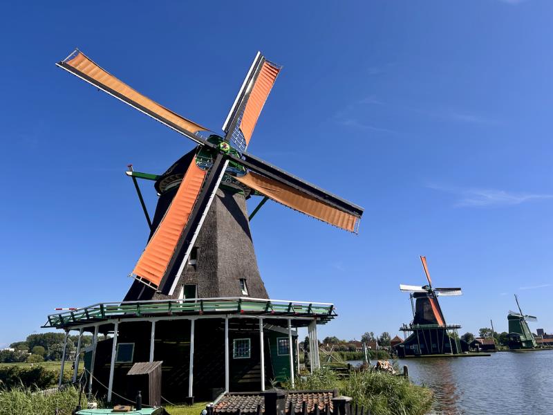 Brasa Beemster -majoituksemme olikin tyylikäs huone boutique hotellissa. Välittömästi majoittumisen jälkeen lähdimme katsastamaan lähellä sijaitsevan Zaanse Schans -alueen perinteiset tuulimyllyt. Nämä tuulimyllyt on siirretty alueelle muualta Alankomasita turvaan ja museoitu. Itseeni Alankomaissa vaikutuksen tekee erityisesti se, että maa todellakin on vahvasti merenpinnan alapuolella. Perinteisiä tuulimyllyjä onkin käytetty Suomessakin tuttujen tuulimyllyjen käyttötapojen lisäksi myös veden pumppaamiseen patojen takaa takaisin mereen.