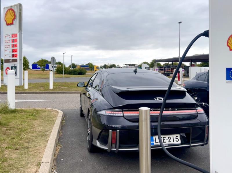 Matkalla Étretatista Bruggeen latasin kerran Abbevillen takana olevan Shell Baie de Sommen Ionity -latausasemalla: 59,79 kWh, 19,73 euroa