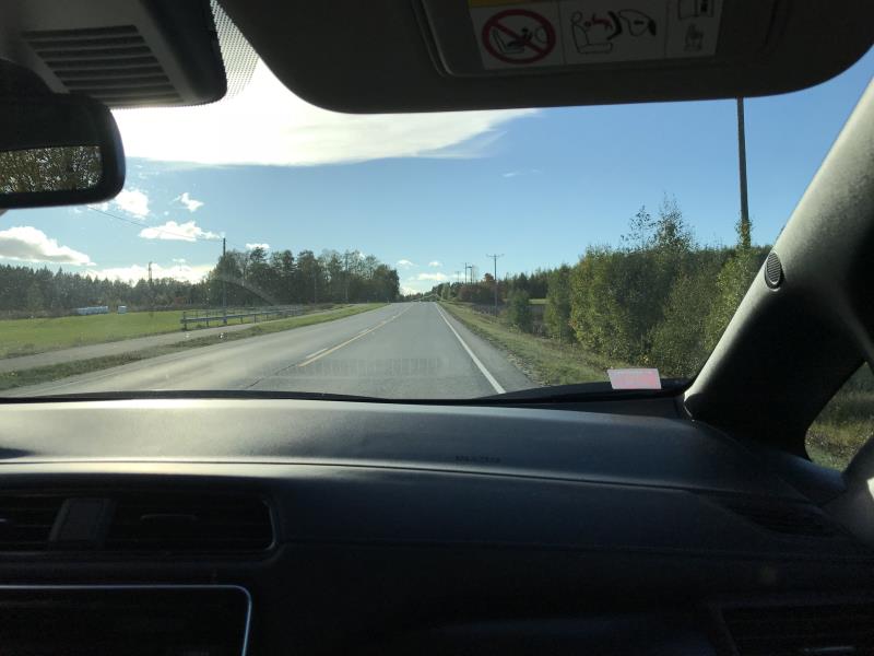 Alussa oli siirtymä maaseudun maantieajoa, jossa tuli hyvin harjoiteltavaksi ajolinjan tarkkailu ja säilyttäminen. Leafin kaista-avustin ilman ProPilottiakin valvoo sekä huomauttelee reunaviivan lähestymisestä. Totesin sen olevan oikeastaan hyvä apu minun opetustyölleni, koska sen verran tiuhaan huomautuksia tuli.