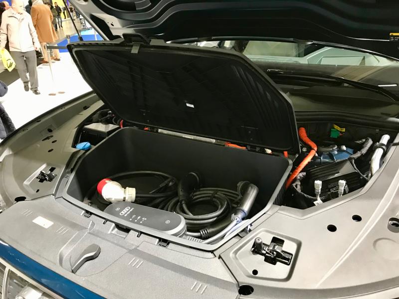 Lataaminen hoituu vakiona 11 kW:n teholla kolmivaihe AC-laturin avulla ja tarjolla on lisävarusteena jopa 22 kW:n tehoinen AC-lataus. Lisäksi Audissa on ensimmäisen kerran latausportit tarjolla molemmin puolin autoa, mutta esittelijältä kysymäni jälkeenkin jäi hiukan epäselväksi, että onko tämän kaksipuoleinen lataus vakiovaruste, vai jokin lisävaruste. DC-pikalataaminen on parhaimmillaan 150 kW:n tehoista.