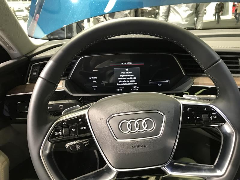 Audin e-tron oli toinen ennalta minua erityisesti Auto 2018 -kohteista kiinnostavista (Konan lisäksi). E-tronia pääsin nyt siis ensimmäisen kerran kylmätyyppäämään, mutta koeajokappaleita autosta ei ollut tarjolla.