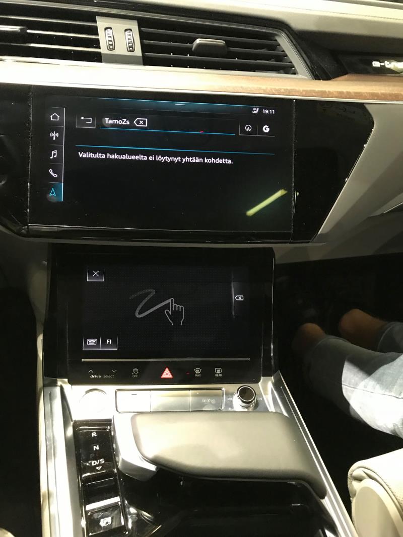 Kuljettajan paikalla saa varmasti lähes kaiken kokoiset kuljettajat haluamansa ajoaennon ja ylellisen tuntuisella istuimella pystyy istumaan pitkäänkin. Mietin että millaisen tunnelman Audin ohjaamo minulle välittää, niin ajatukseni vääjäämättä vertautui Teslaan sekä toisaalta Jagurain I-PACEen. Minulle tuli sellainen ajatus, että tämä on jotain noiden kahden väliltä. Ei yhtä teknohifi, kuin Tesla, mutta ei yhtä konservatiivinenkaan kuin Jaguar.