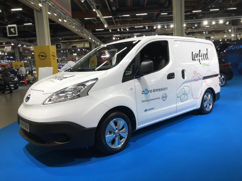 Oli Nissan tuonut noiden kahden Leafin lisäksi paikalle myös E-NV -sähköpakettiauton, josta kävijöille anniskeltiin jotain mehukeiton kaltaista juomaa kylmänä.