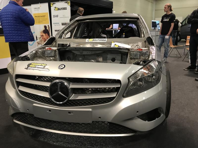 Korjaamomessujen puolelta löytyi myös erallycross-projekti, jossa oppilaitostyönä muutetaan A-mersusta sähköistä rallicrossautoa.