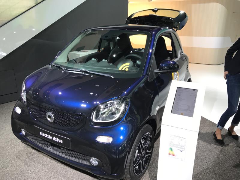 Itseäni kuitenkin Daimlerin osastolla eniten kiinnostivat Smartin tuotannossa jo olevat sähkö-Smartit. Niitä on kaksi paikkaisina sekä isompina tarjolla. Toistaiseksi ne ovat varustettuina hiukan pienehköillä 17 kWh akuilla ja vain hitaaksi luokiteltavalla Type2-latauksella. Osaston esittelijät kuitenkin lupailivat ensi vuodelle yli 20 kWh akkua ja nopeampaa latausta tarjolle.