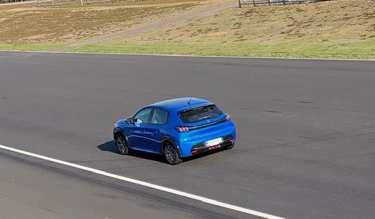 Kuten katukäyttöön tarkoitetuissa autoissa yleisesti, on myös e-208:n jousitus on rata-ajoon pehmeä. Yhtä toivoton se ei kuitenkaan ollut, kuin 40 kWh Leafissa ja mutkissa ajo antoi ensimmäisistä kierroksista alkaen enemmän luottamusta auton hallittavuuteen. Kovalla vauhdilla ajettavissa mutkissa kallistelu pysyy sähköautossa alhaisen painopisteen ansiosta helpommin aisoissa, kuin polttomoottorisissa sisarissaan, mutta lopullisesti asian ratkaisee alusta ja etenkin siellä olevat kallistuksenvakaajat. e-208:n kallistelu on nopeissa mutkissa tuntuvaa, mutta ei lähellekään yhtä häiritsevää kuin Leafissa. Jousituksen ja iskunvaimentimien yhteistoimintaa Alastaron tasaisella radalla ei pääse testaamaan muutoin kuin nopeita mutkia täysillä vetämällä. Niissä Leafia vaivannut huojunta puuttui Pösöstä käytännössä kokonaan ja tässä suhteessa e-208 pesi 40 kWh Leafin selkeästi.