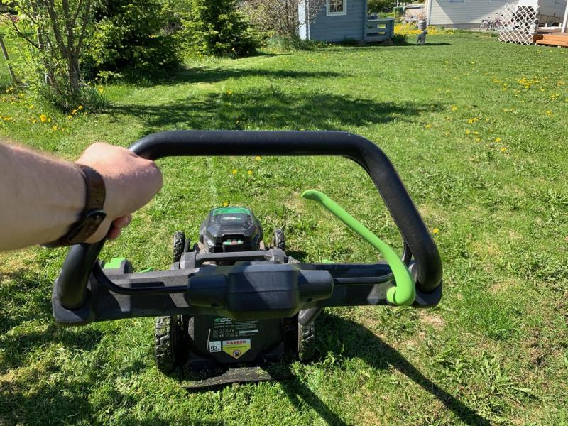Leikkurilla on mahdollista niittää nurmikkoa allesilputtuna, sivulle heitettynä tai kerätä se työntöaisan alle sijoitettavaan 60l tilavuuksiseen keräimeen. Mistään en löytänyt hiiliharjattoman moottorin kW tai Nm -lukemia, mutta 56V tekniikkaan perustuvassa moottorissa kerrotaan olevan hyvin vääntöä, mutta palaan tuohon aiheeseen tarkemmin käyttökokemuksissani. Vapaasti pyöriessään terät pyörivät 3000 kierrosta minuutissa, mutta laitteessa on automaattinen voiman tarpeen ja kierrosten säätötoiminto. Vanhasta EGO Powerin esitteestä löysin kuitenkin sen verran tehosta tietoa, että 56V tekniikalla saadaan ulos parhaimillaan 3360 W tehot, mutta ilmeisesti tämän todellisempi teho on noin 1,6 - 2,3 kW.