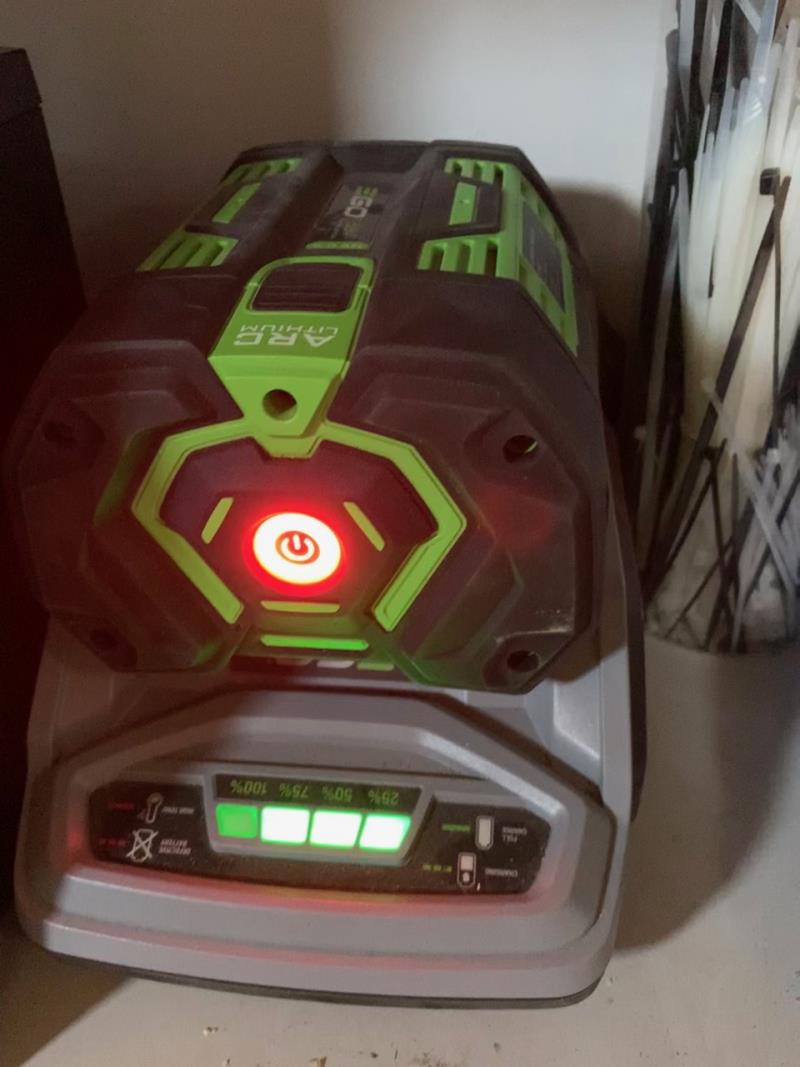 EGO Powerin akuissa ja laturissa on hyvän ja äänekkään tuntuiset lämmönhallinnat etenkin latauksen ajalle ja lataaminen on mielestäni mielekkään nopeaa. Akku latautuu noin 30 minuutissa tyhjästä täyteen asti. Laturin kerrotaan myös olevan sillä tavalla älykäs, että akun voi jättää siihen pidempää säilytystä varten ja laturi hoitaa akun ylläpidon ja kunnon sillä aikaa. Tämä on myös käytännössä tuntunut toimivan ainakin omassa vanhemmassa akussa, koska leikkuuaika ei ole vielä lyhentynyt.