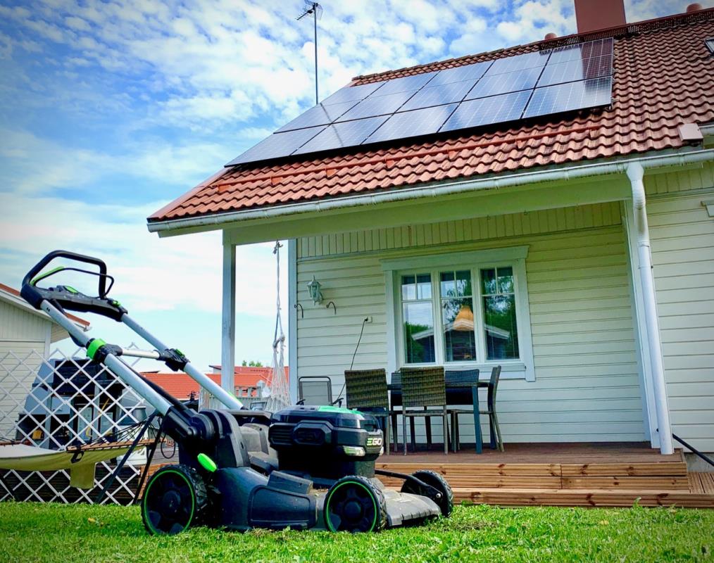 Sähköauton myötä kalustoni on pikkuhiljaa muuttunut muiltakin osin sähköiseksi sillä seurauksella, että bensiinikanisterit varastossa ovat jääneet turhan pantiksi. Moottoripyörä on vaihtunut pariin sähköpyörään ja B&S-moottorinen bensiinikäyttöinen ruohonleikkuri on vaihtunut akkukäyttöiseen. Tämä sopii erinomaisesti, koska enää minun ei tarvitse hakea fossiilisia polttoaineita erikseen edes nurmikon niittämistä varten, vaan energia tulee siihen käyttöön oman talon katolla olevasta aurinkovoimalaitoksesta tai vihreällä uusiutuvan energian sähkösopimuksella.