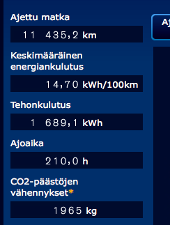 Ilmeni, että ajossani pienimmät kulutukset on ollut 11,2 kWh/100km.