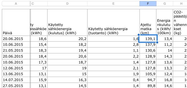 Toisen ajomatka on ollut 10.6.2015 peräti 137,9 km, ja toinen on ollut toukokuussa vain 38,6 km.