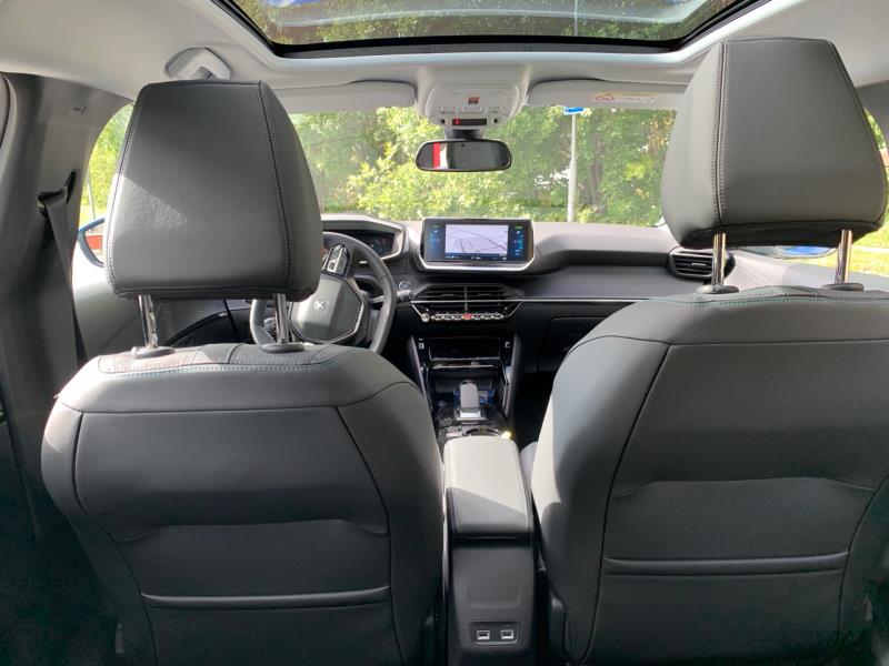 Kuljettajalla ja etumatkustajalla on e-208:ssa riittävästi tilaa ja kuljettaja saa hyvän ajoasennon istuimen reippaan korkeussäädön sekä ratin korkeus- sekä syvyyssäädön avulla. Apukuljettajan paikkaa on syytä sovittaa, mikäli siinä on tarkoituksenmukaista istua usein suurempikokoisen henkilön. Me olemme nykyistä suomalaisten ihmisten keskimittaa lyhyempiä, joten meille tila riittää juhlavasti. Voin kuvitella, että 180 cm ja sitä pidemmät henkilöt saattavat kokea ahtautta kartturin paikalla, koska penkissä ei ole korkeussäätöä. Etuistuimissa ei ole Allure-varusteversiossa ristiseläntuen säätöä, mutta ainakaan ensimmäisellä noin 400 kilometrin päiväajolla en tuntunut sitä kaipaavan. Keskikonsoli on sopivalla kohdalla ja mukavan pehmeä omalle kyynärpäälle ja vasen käsi lepää mukavan tuntuisesti ovipaneelin kyynärnojassa kun ratin tuo oikeaoppisen lähelle vartaloa.
