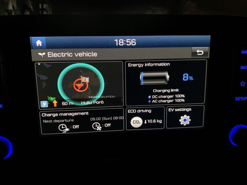 Nyt ajossa ollut auto oli vielä viimevuoden mallia. Uudessa päivitetyssä on jo kolmivaihelataus, joten mahdolliset Type2-latauksetkin nopeutuvat dramaattisesti. Tässä matkassa tuo Äkäslompolon reilun kolmen tunnin tauko olisi puolittanut noin 1,5 tuntiin.