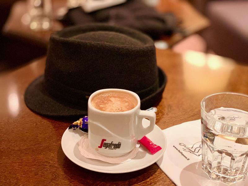 Latauksen aikana kävin hotellin ravintolassa virkistäytymässä ja nauttimassa tripla americano -kahvit ja tapasin myös muita #evwintertour2020 -retkellämme olevia sähköautoilijoita hetken.