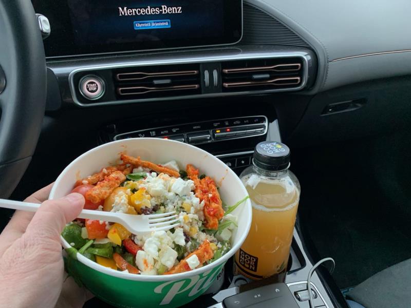 - Auton kulutusmittarin kautta laskettuun laskennalliseen kulutukseen eroa on siis 10 kWh:n verran, joka on varmuudella enemmän, kuin käytimme auton lämpimänä pitämiseen pikalatauksen 1h16 minuutin aikana. Huomasin toki, että Mersu lämmitteli itseään sisältäkin myös esimerkiksi CandyWorldin pysähdykemme aikana.