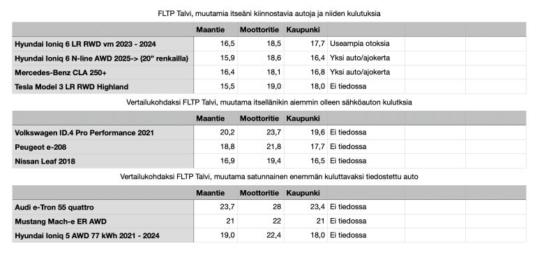 Sanoisin, että pienine puutteineenkin FTLP-tietokanta antaa hyvää tietoa sähköauton ostoa tai seuraavan vaihtoa suunnittelevalle. Siellä näkyvillä kulutuksilla ja toimintamatkoila pystyy hieman paremmin haarukoimaan omille tarpeille sopivaa sähköautomallia.