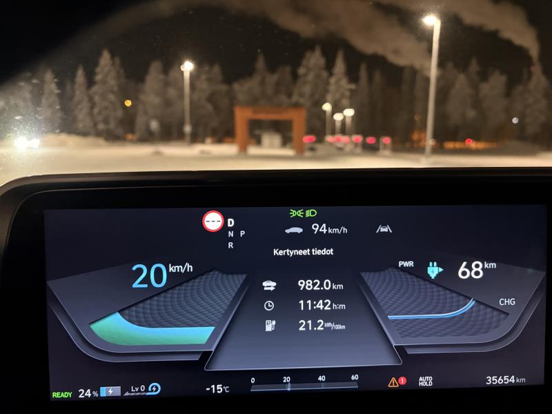 Oma ajoaikani oli kokonaisuudessaan 13 tuntia 42 minuuttia. Pidin 4 taukoa ja jokaisella latasin. Kolme olisi riittänyt, kuten ainakin toinen muista Ioniq 6:sta eteni. Tieltä pääpoistumisen ja sinne paluun kokonaisaika vie vääjäämättä sen verran, että olisi kannattanut tosiaan mennä kolmella stopilla.
