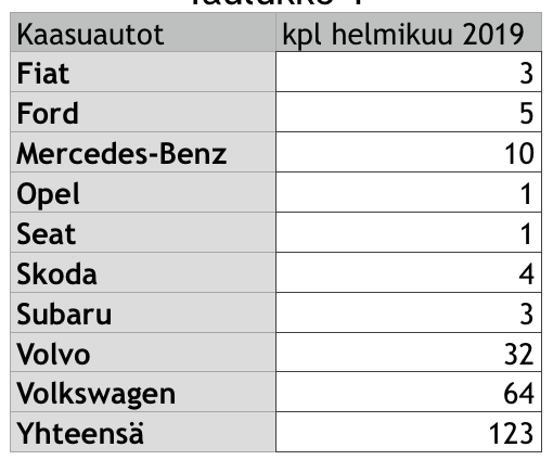 Kaikkien lukujen lähde: Trafi, Tilastotietokanta, tammi- ja helmikuut 2018 sekä 2019
