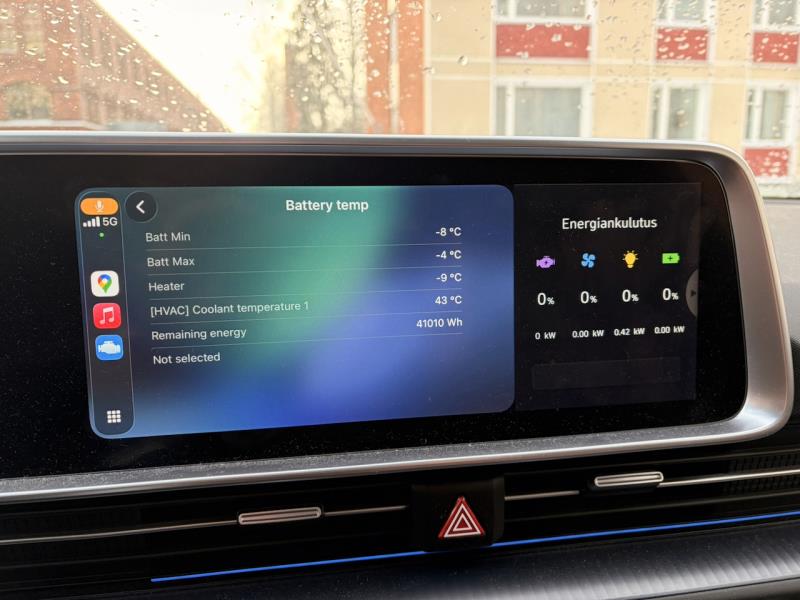 Hyundai Ioniq E-GMP -sähköautojen navigaattorissa on useimmissa tilanteissa kiitettävän tarkasti toimiva ominaisuus, mikä näyttää akuston varaustason kohteessa ja välikohteessa. Tuossakin on vain käsittämätön ohjelmistovirhe! Olen tehnyt jo useita vertailupareja ja täysin säännön mukaisesti toistuu sama kaava: kun akuston minimilämpö on pakkaksella (tai nolla) akuston varaustason ennustetta ei näytetä navigaattorissa. Kun akuston minimilämpö saavuttaa +1°C, ilmestyy auton navigaattoriin akuston varaustason ennuste kohteessa. Tässä jossain ei ole mitään logiikkaa, vaan selkeä laskennan virhe kyseessä, kun kaava ei osaa huomioida -merkkistä lämpötilaa.