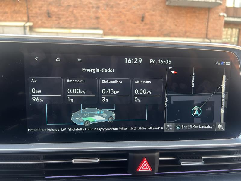 Ei yltänyt ainakaan tällä reitillä ja tällä kelillä Ioniq 6 haamumataliin kulutuksiin, toki en yrittänyt ajossa säästelläkään. Ajoneuvon ajotietokoneen näyttämällä kulutuksella Ioniq 6 olisi tällä kertaa kulkenut 100 prosentin varaustasolla lähtien noin 526 kilometriä. Autolle ilmoitettu WLTP-yhdistetty toimintamatka on 20" vanteilla 545 - 549 kilometriä, joten aivan en yltänyt siihen. Pitkäksi meni myös autolle ilmoitetusta 14,3 kWh/100 km kulutuksesta, koska sitä vastaava lataushäviöt sisältävä kulutus oli tällä kertaa 15,7 kWh / 100 km. Toisaalta ei tämä ajo suoritettiin WLTP:n määrityksiä huomattavasti suuremmalla nopeudella sekä ilmastointia käyttäen. Kiinnostaisi saada kyseiseen autoon perusmallin 18" vanteet kesärenkaille ja nähdä, että laskeeko kulutus ja nouseeko toimintamatka todella valmistajan ilmoittamat 64-69 kilometriä.